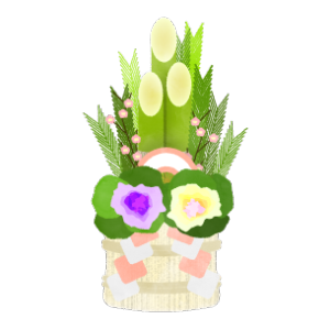 梅・扇子・御幣かざり付き門松のイラスト Ilustração de KADOMATSU com decoração de UME(ameixa) , SENSU(leque), GOHEI