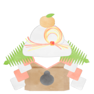 水引・裏白付き鏡餅のイラスト(御幣・下) Ilustração KAGAMIMOCHI com Mizuhiki e Urajiro(GOHEI inferior)